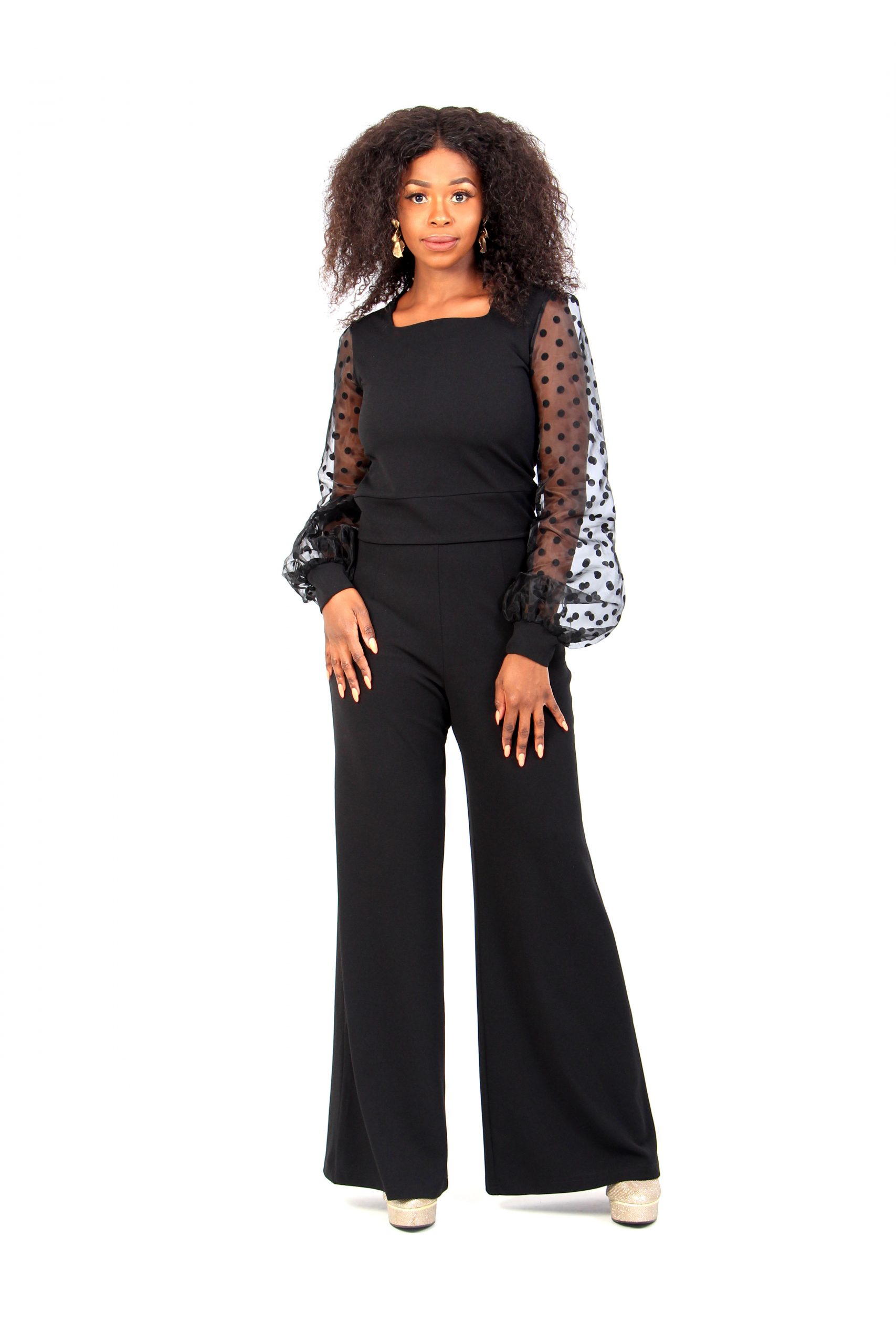 Description: Black high waist palazzo pants & bubble chiffon sleeves