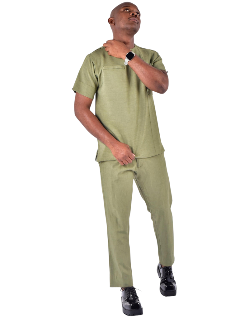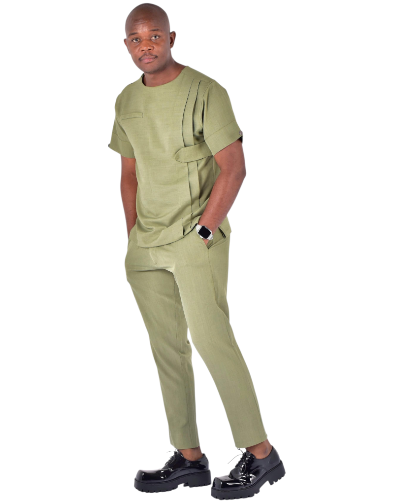 Description: Matching classic fitteDescription: Matching classic fitted 2-piece set, shirt with pleated details & buttons