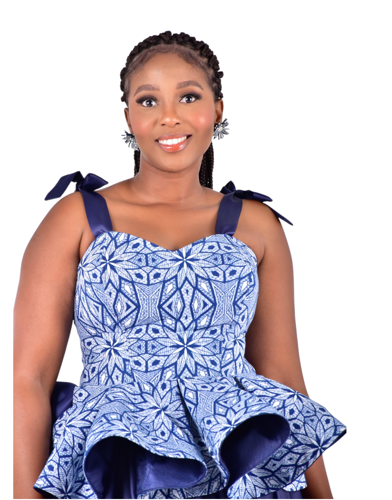 Description: Bubble Satin paired with a shweshwe peplum top
