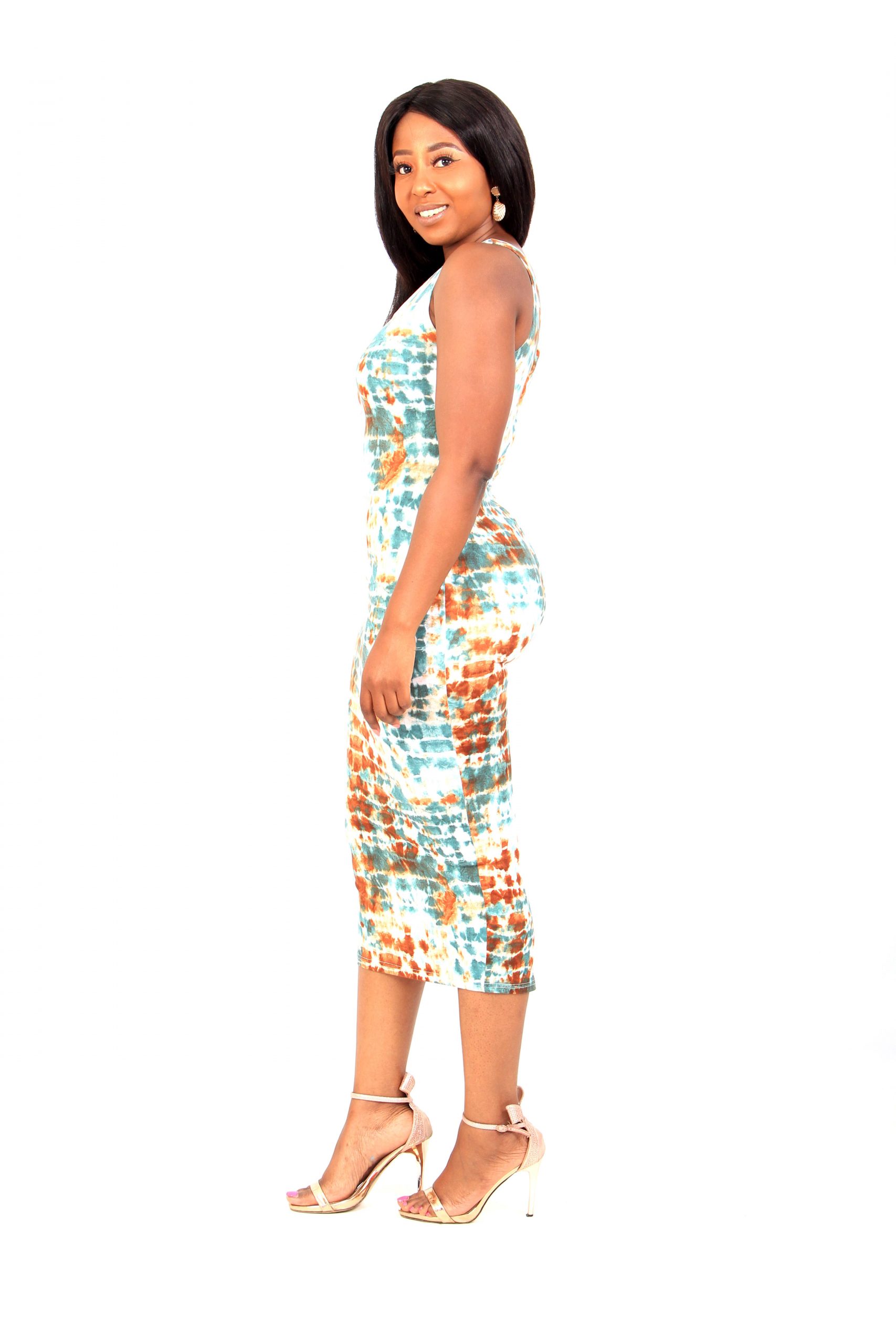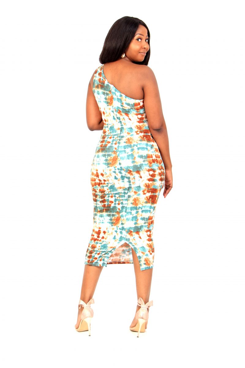 Description: One shoulder tie-dye bodycon midi dress with back zipper